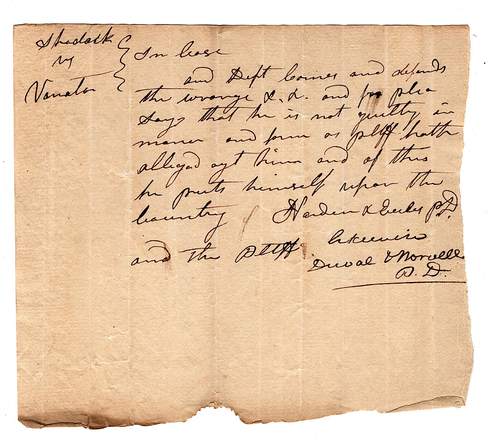 14. [NEW YORK] John Van Ness Yates (1779-1839) born in Albany, New York, the son of Robert Yates, later Chief Judge of the New York Supreme Court of Judicature. He studied law in the office of John Vernon Henry, a leading member of the Albany bar, and once he had been admitted to the bar, he set up a very successful law office in Albany. In 1806, when New York was required to raise a quota of 12,000 men to combat British aggression, John Van Ness Yates commanded a Light Infantry company that immediately offered its services to the President, and confirmed their immediate readiness. Yates was appointed a master in Chancery in 1808, and, the following year, was the subject of a series of cases, In Re John Van Ness Yates, involving a jurisdictional tussle between the New York Supreme Court of Judicature and the New York Court of Chancery. Upon the conclusion of this litigation, Yates sued the Chancellor, seeking the monetary penalty provided under the Habeas Corpus Act (Yates v. Lansing). Although Yates did not prevail, the case established the principle that a judge of a court of general jurisdiction cannot be called upon to answer in a civil action for an error of judgment in any matter within his jurisdiction. In 1816, with Aaron Burr as co-counsel, Yates represented the plaintiff in Gardiner v. The Trustees of the Village of Newburgh, et al. John V. N. Yates served as New York Secretary of State from 1818 to 1826, and was appointed by the Legislature to add notes and references to the revised laws of New York. His work was acclaimed and he also published Select Cases Adjudged in the Courts of the State of New York, Containing the Case of John V. N. Yates and the Case of the Journeymen Cordwainers (New York, 1811); A Collection of Pleadings and Practical Precedents, with Notes thereon (2d ed., 1837); History of the Province of New York (Albany, 1814); and, with Joseph W. Tillinghast, a Treatise on the Principles and Practice, Process, Pleadings, and Entries in Cases of Writs of Error (Albany, 1840). A contemporary described John Van Ness Yates as a wit, a poet, a belles-lettres scholar, and a boon companion, whose joke was ever ready, and whose laugh was contagious. Offered here is an early New York Supreme Court document 1815 signed by Yates, approx. 7-3/4 x 8-1/4 in. VG.............80-120