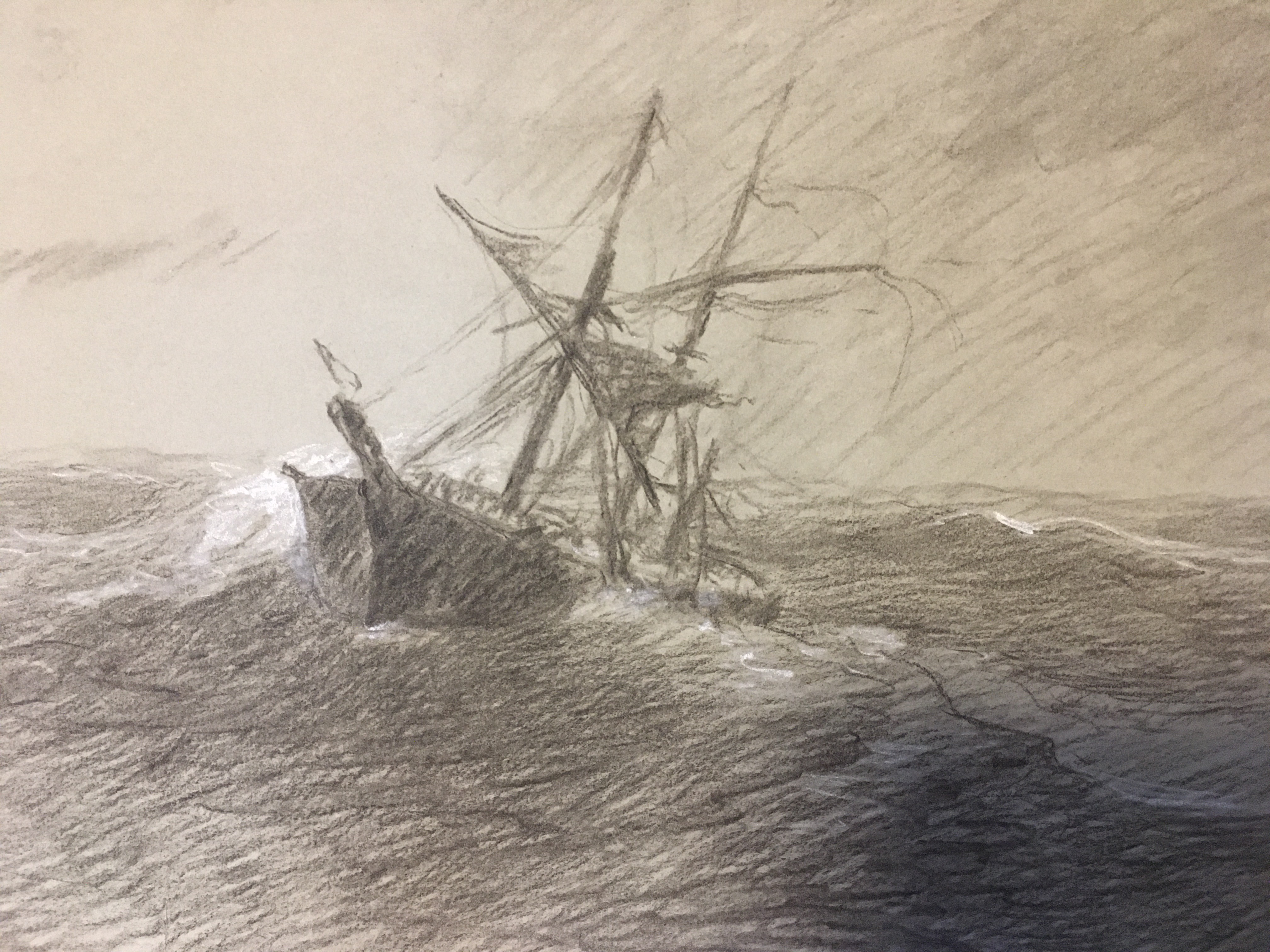 398. [ART] FRANK LOUISVILLE BOWIE (1857-1936) Maine artist. Member of the "Brush-Ins" group. Friendly with Winslow Homer. Three original charcoal drawings, none are signed. These are early drawings done in the 1890s. The image are approx. 15 x 12 in. plus margins. You can see that the edges are faulty but the image areas are ok. Provenance: the artist's estate............Min. Bid $150