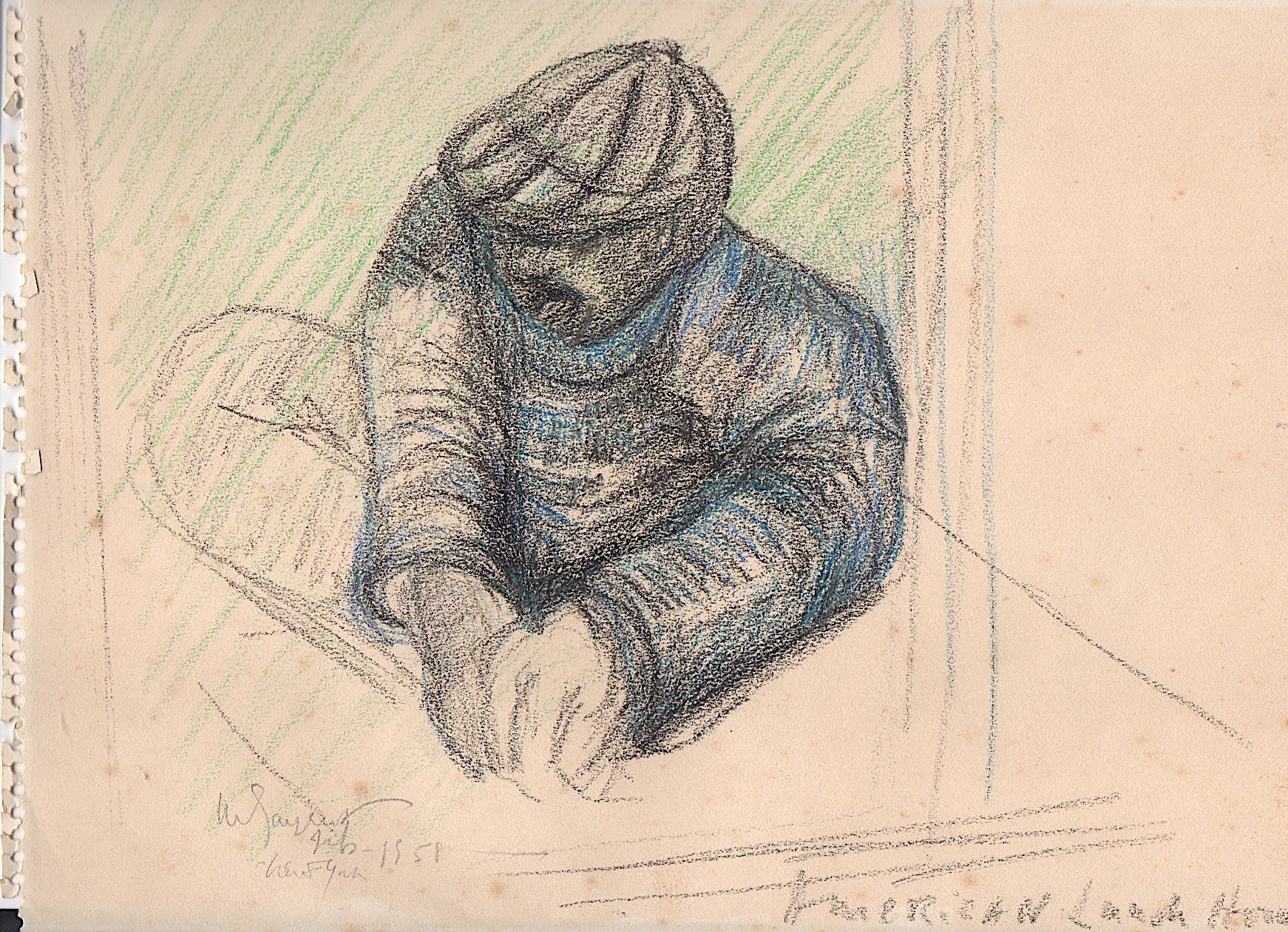 363. [ART] FREDERICK "Fritz" SOLOMON (1899-1980) German Expressionist artist. Original charcoal drawing, not signed approx. 14-1/4 x 13-1/2 in. Unframed. Solomon won the Mowbray Prize [1944] in London; was listed in WHO'S WHO IN ART [1954 London edition]. He studied art with such famous German artist's as: Max Liebermann, Martin Brandenburg, Eugene Spiro & Willy Jaeckel [Masterclass]. Exhibitions: Berlin, Cologne, Capetown, Haifa, London [Royal Academy], U.S., and in 1958 had one-man show at the Palacio de Bellas Artes in Havana, Cuba. In 1956 several of his paintings were exhibited at the Butler Institute of American Art, Youngstown, Ohio. He died in the U.S. We purchased his personal papers and most of his drawings at his estate sale. His work is fairly scarce. The photos shown below DO NOT accompany this drawing and are not for sale. Also, showing below is a copy of Royal Academy of Arts notification that Samuel Courtauld has selected a painting by Solomon for purchase in 1945. Courtauld, who would died two tears later, was the founder of the Courtauld Art Institute in England. Courtauld had formed an important art collection including multiple works by Manet, Cezanne, Renoir etc., which he gave to the Courtauld and the Tate. He had purchased at least 5 paintings by Frederick Solomon and when he saw the painting JACOB at Solomon's exhibition at the JABE Gallery he ordered that the painting be sent to the TATE Gallery but he died a few days later and the purchase never took place. Very RARE...............300-400